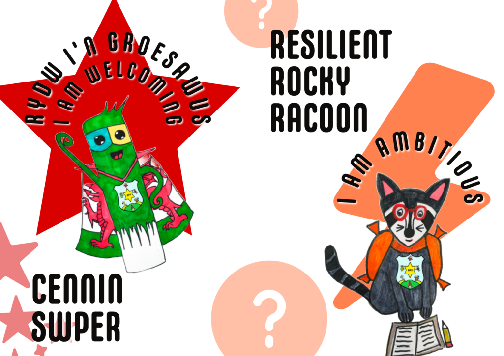 Cennin Swper is about celebrating all things Welsh. They love community and creating a sense of belonging and bringing people along as they grow. Resilient Rocky Raccoon loves a challenge and the opportunity to grow and learn from their mistakes. They rise to a challenge and learn to adapt as they navigate the school days.