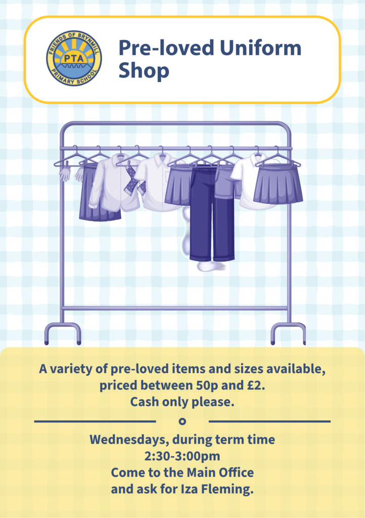 Uniform Shop Our uniform shop is open every Wednesday afternoon from 2:30–3:00pm.